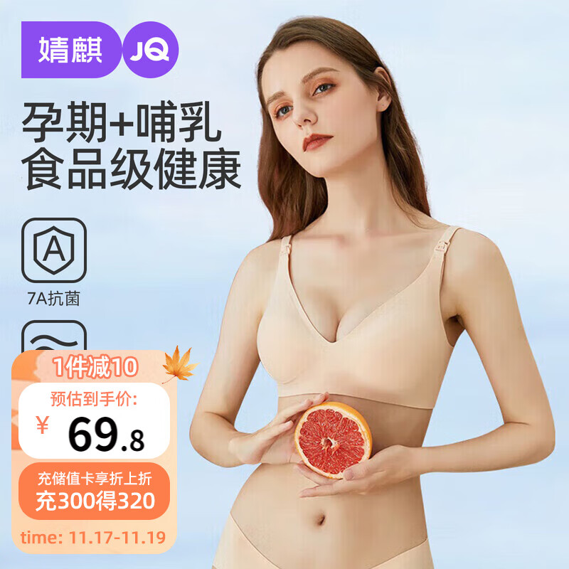 婧麒(JOYNCLEON)哺乳内衣孕妇文胸怀孕期产后喂奶专用聚拢防下垂 肤XL jwx10300