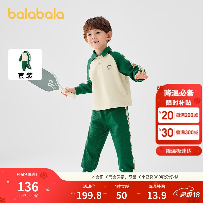 巴拉巴拉童装儿童套装男童女童长袖春秋季2025宝宝翻领卫衣潮208125104204