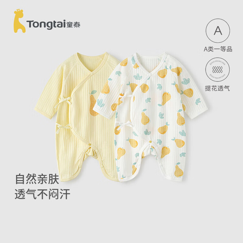 童泰(TONGTAI)婴儿连体衣夏纯棉衣服初生宝宝蝴蝶哈衣爬服提花黄色66cm