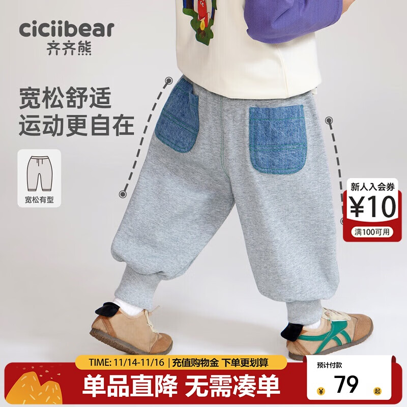 齐齐熊男童卫裤春秋款男宝宝裤子休闲裤2025新款儿童长裤
