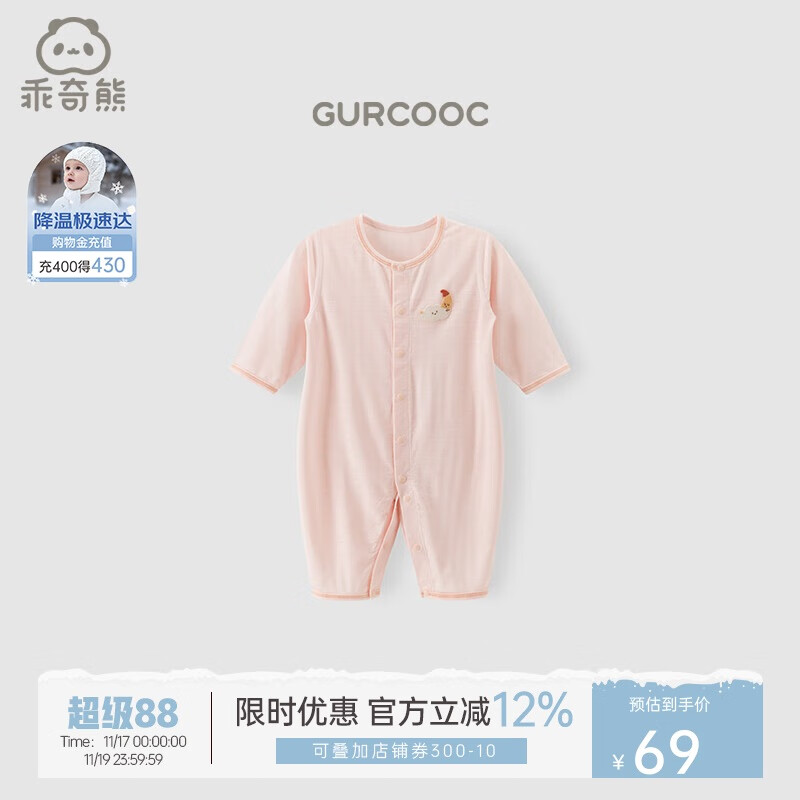 乖奇熊【轻爽棉】宝宝四季装连体衣薄款长袖空调服婴儿弹力哈衣爬服春秋