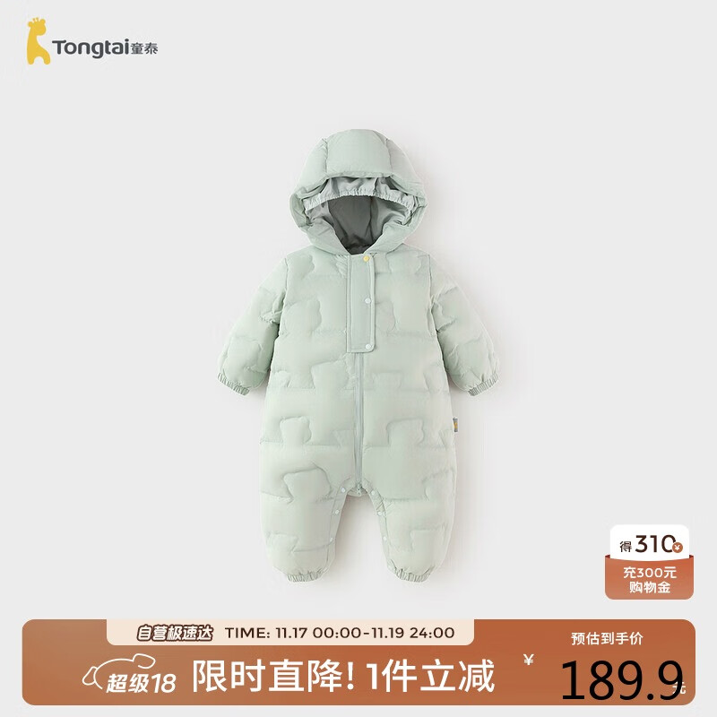 童泰(TONGTAI)婴儿羽绒服连体衣冬季宝宝哈衣男女童三防连帽鸭绒服绿色90cm