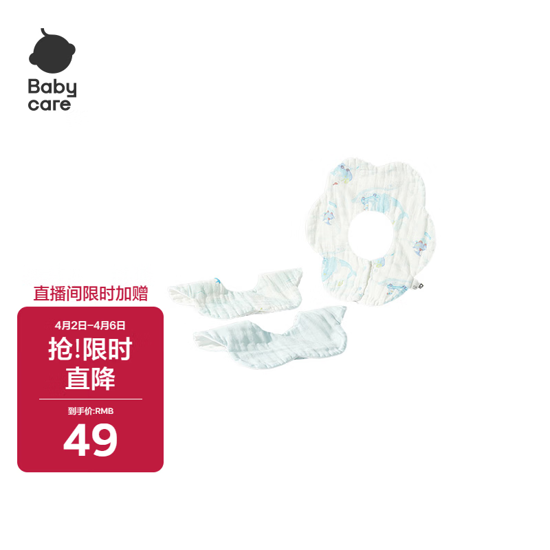 babycare婴儿口水巾透气薄款纯棉新生儿围嘴宝宝纱布围嘴鲸鱼乐车3条装