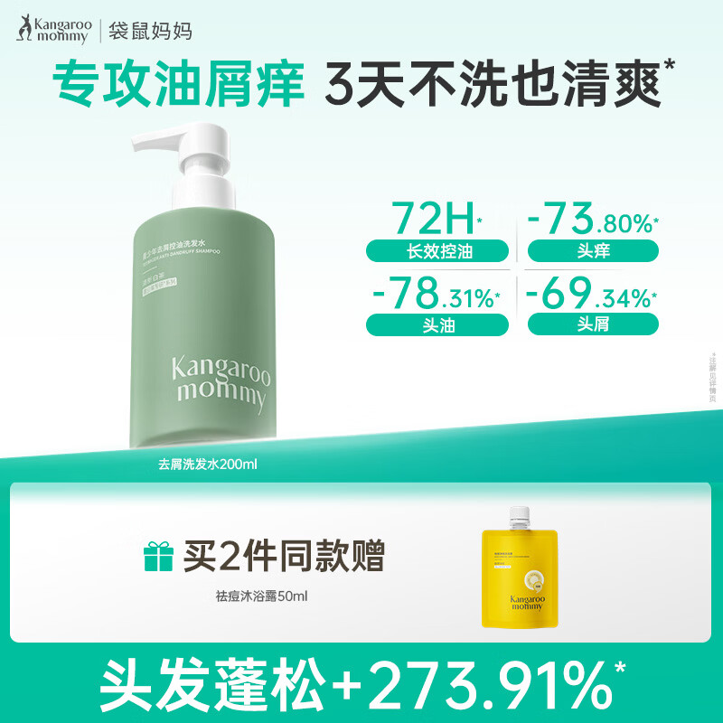 袋鼠妈妈青少年洗发水去屑青春期洗发水清洁舒缓头皮净异味200ml