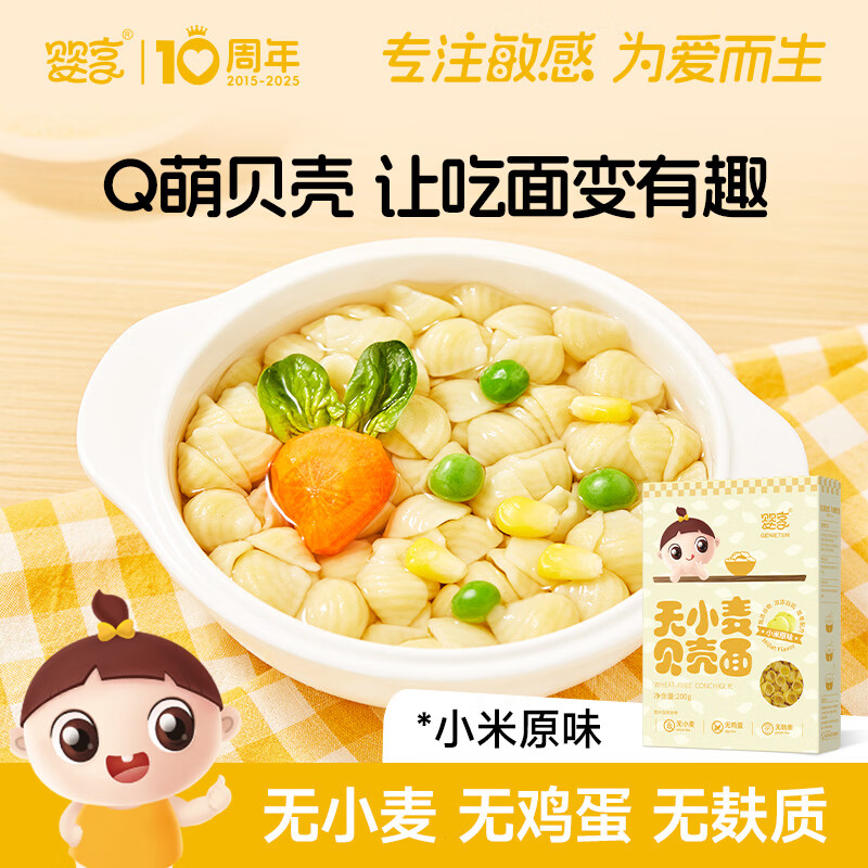 婴享(Genieten)无小麦无麸质儿童贝壳面造型面含婴儿宝宝辅食谱 小米原味200g