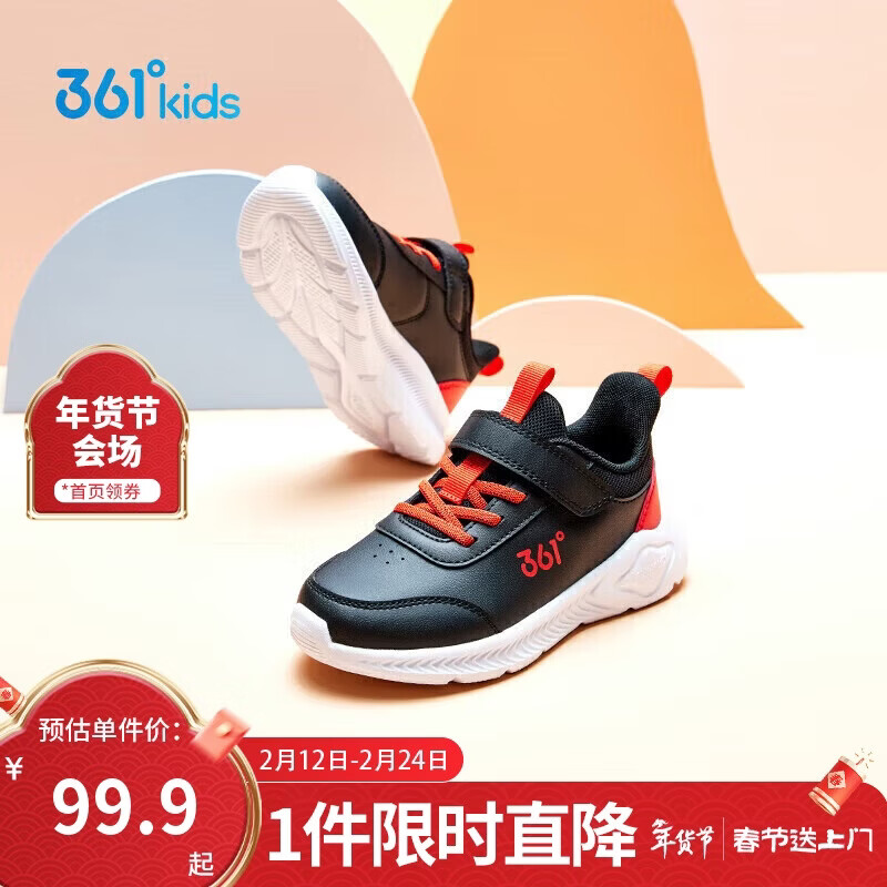 361°童鞋 儿童运动鞋25冬季男女童3-14岁皮革校园跑鞋 黑38