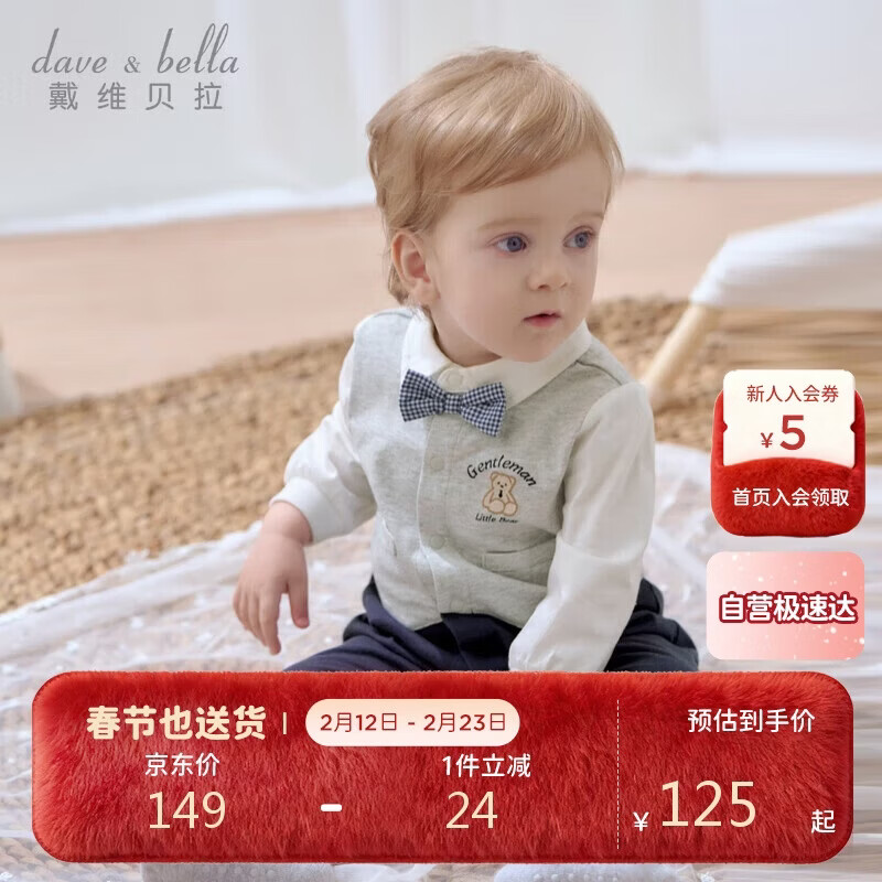 戴维贝拉新生儿连体衣春装男宝宝哈衣婴儿绅士爬服