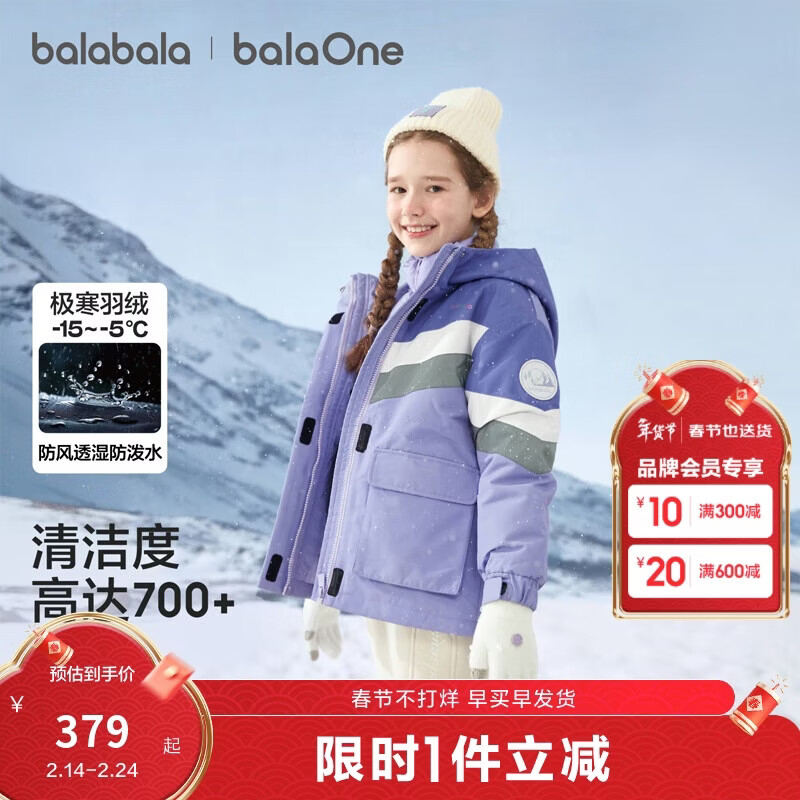 巴拉巴拉童装儿童羽绒服男女童2025新冬季加厚保暖两件套防风防水透湿科技
