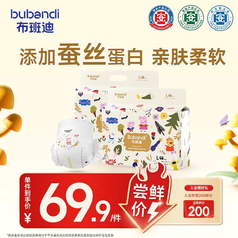 布班迪小猪佩奇甄芯薄Pro拉拉裤L92片婴儿尿不湿蚕丝蛋白