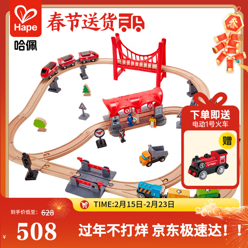 Hape(德国)儿童小火车轨道玩具木质拼搭diy多功能套装新年礼物E3730