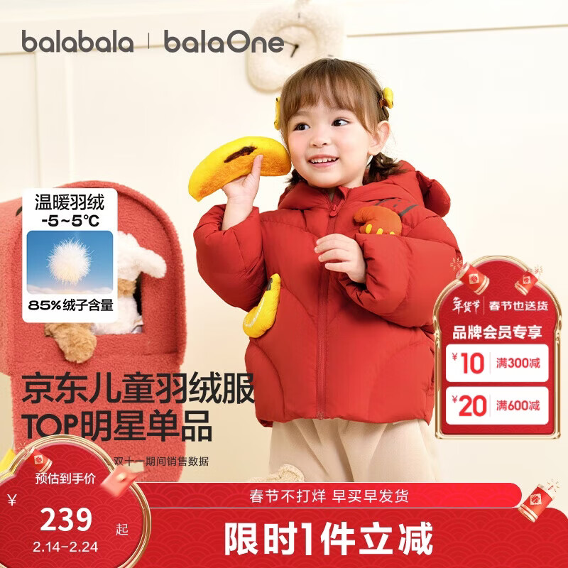巴拉巴拉童装儿童羽绒服男女童外套冬装2025新款婴儿衣服保暖加厚泡芙羽绒