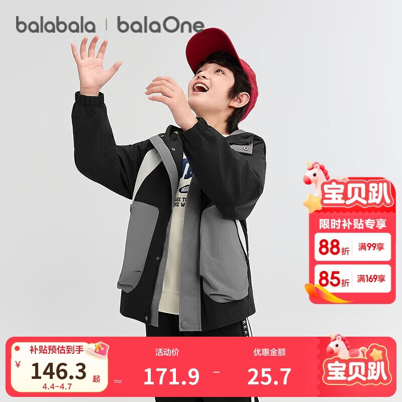 巴拉巴拉童装男童外套运动休闲儿童上衣2025秋工装防泼水防潮208325105104