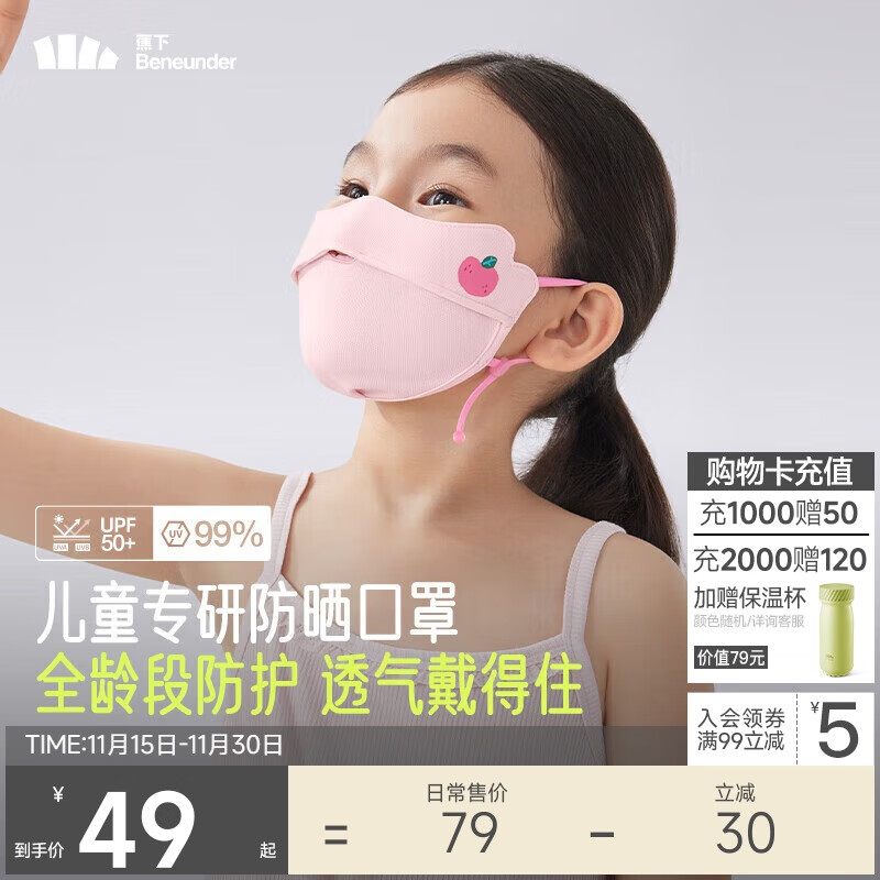 蕉下儿童口罩儿童透气护眼角防晒口罩AS33824粉糯桃桃M