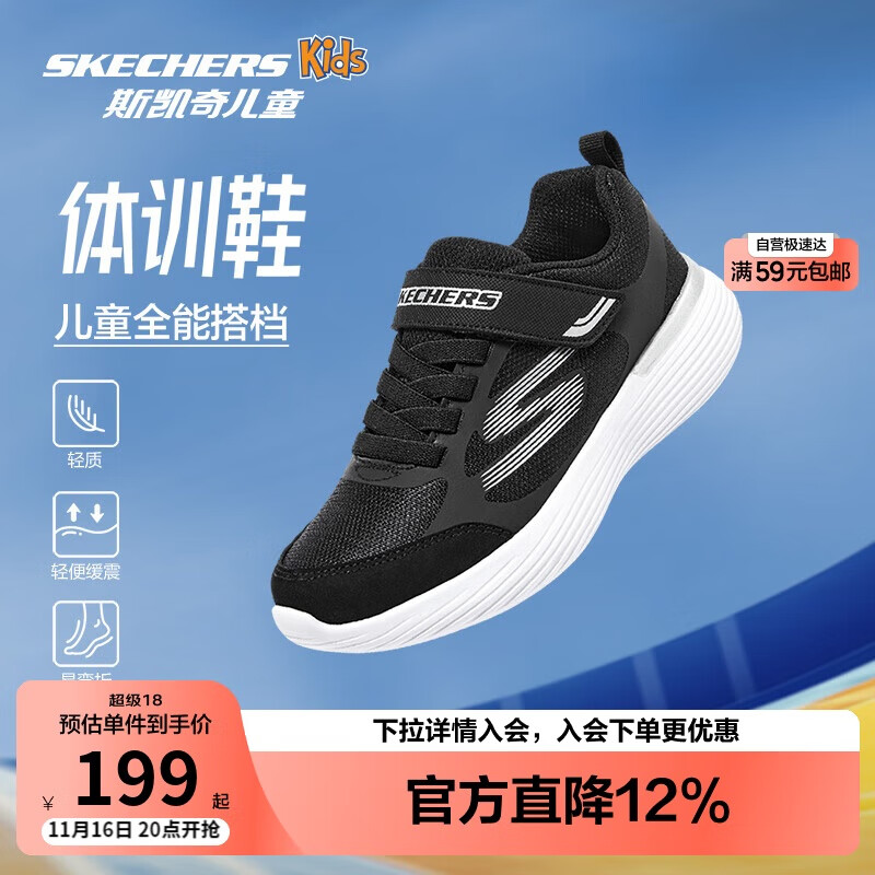 Skechers斯凯奇自营儿童运动鞋男大童跑步鞋轻便减震魔术贴童鞋405104L