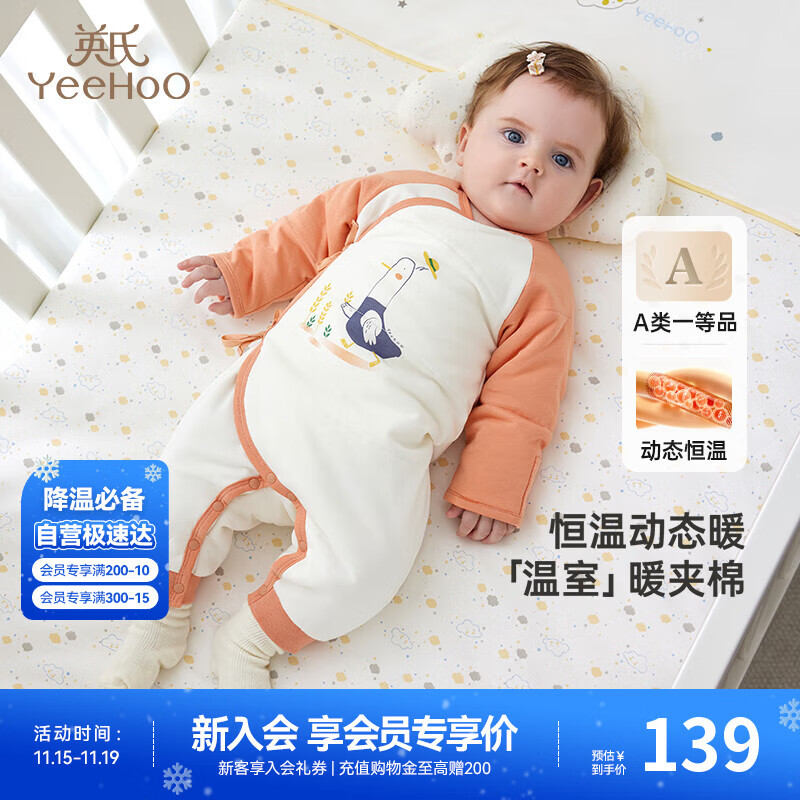 英氏(YEEHOO)夹棉连体衣动态恒温婴儿衣服秋冬保暖新生儿衣服精梳棉宝宝爬服