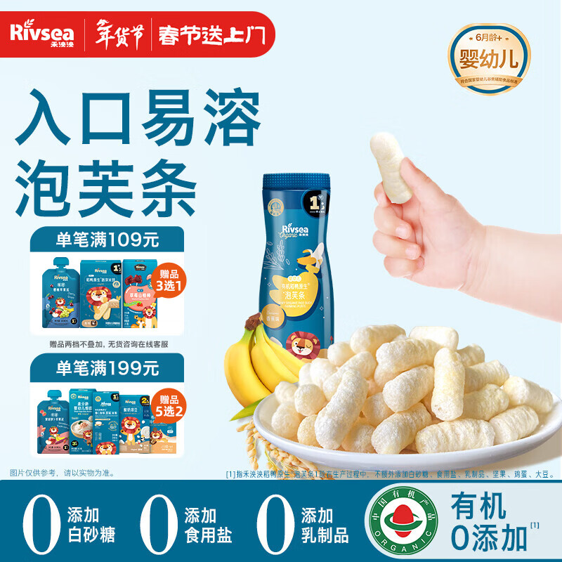 禾泱泱有机婴幼儿高钙泡芙条香蕉味 宝宝婴儿零食 稻鸭原生低敏32g 6月+