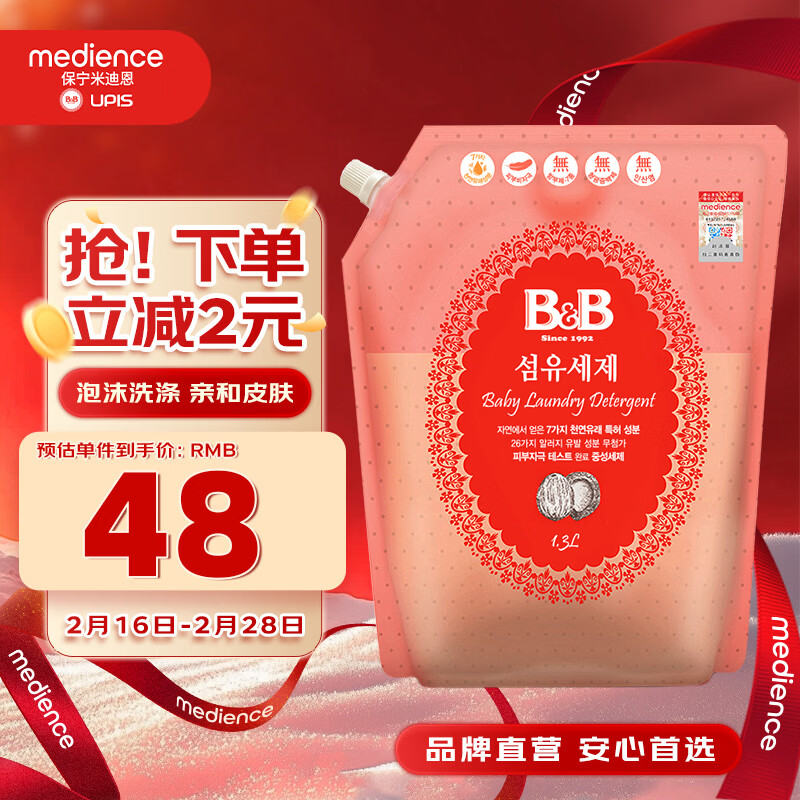 保宁(B&B)进口婴儿洗衣液宝宝专用内衣物清洁洗衣液温和植萃【2.6斤袋装】