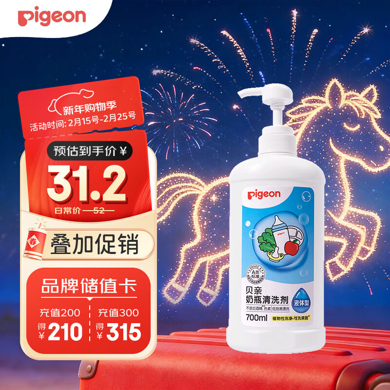贝亲(Pigeon)奶瓶清洗剂婴儿专用奶嘴玩具果蔬清洗剂清洁剂洗洁精 700ml MA27