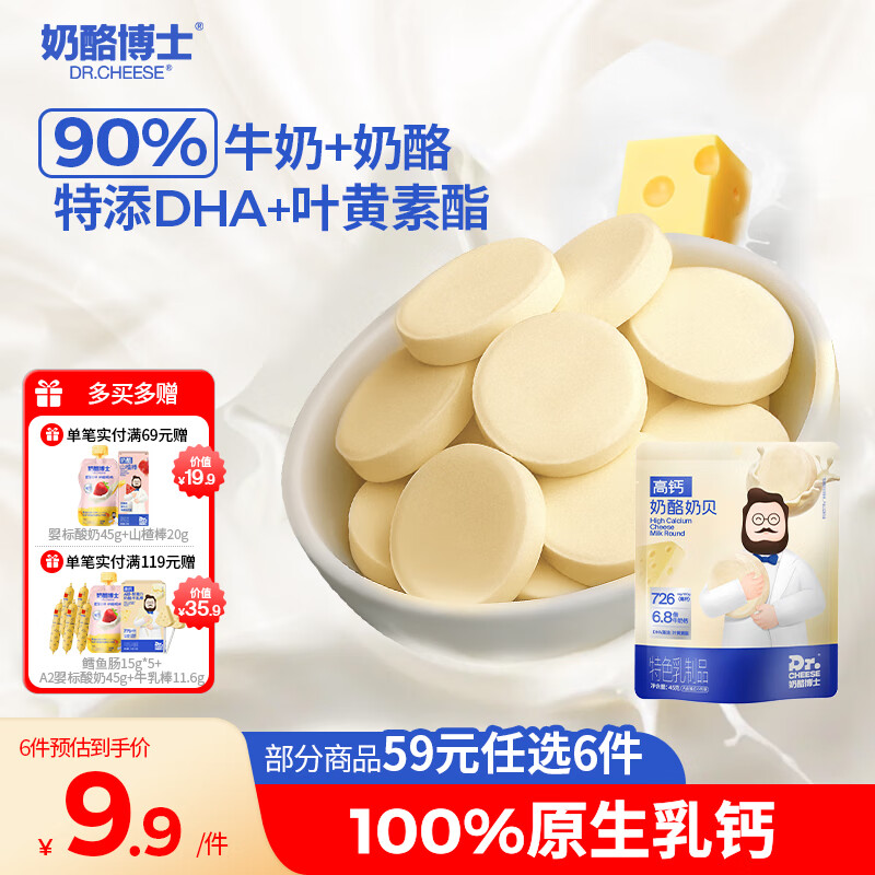 奶酪博士(Dr.Cheese)高钙奶酪奶片45g 宝宝儿童零食奶贝DHA牛乳原生乳钙无白砂糖