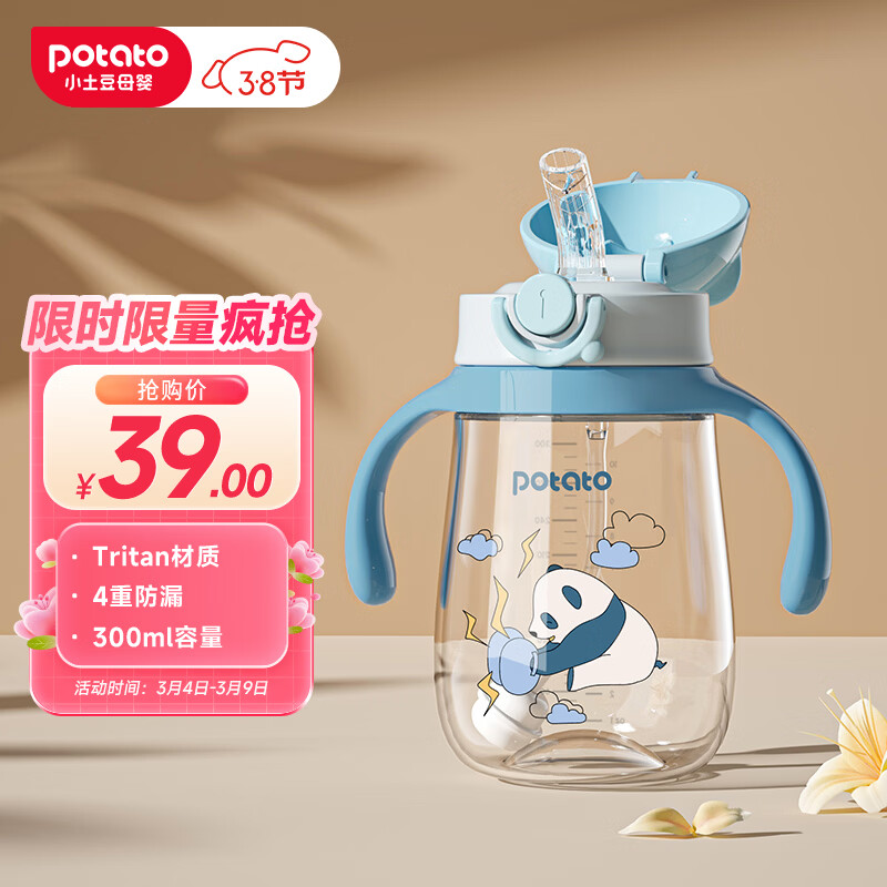 小土豆(potato)儿童水杯宝宝水杯带重力球吸管带手柄开学喝水杯 300ml迷雾蓝