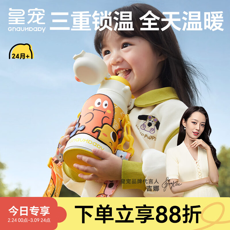 皇宠儿童保温杯小学生直饮大容量水杯吸管杯外出水壶二合一550ml+杯套