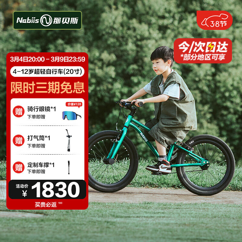 Nabiis那贝斯儿童自行车6-7-10-12岁铝合金超轻青少年学生单车20寸高绿