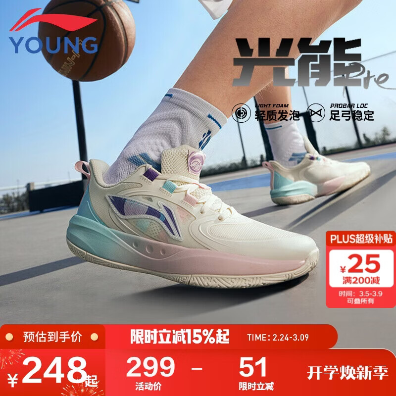 李宁童鞋儿童篮球鞋男大童光能pre闪卡回弹运动鞋39YKBU046-15
