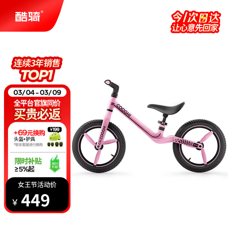 酷骑儿童平衡车3-8岁宝宝滑步车14寸轻便车身大童休闲充气轮S4 酷奇