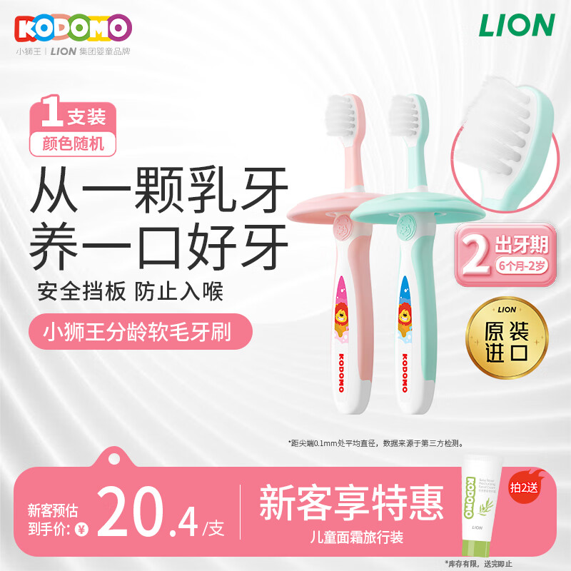 狮王(Lion)小狮王儿童牙刷1-2岁 婴幼儿宝宝细软毛乳牙清洁牙刷单支颜色随机