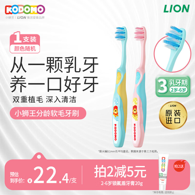 狮王(Lion)小狮王儿童牙刷2-3-6岁 进口宝宝软毛牙刷幼儿颜色随机热门商品