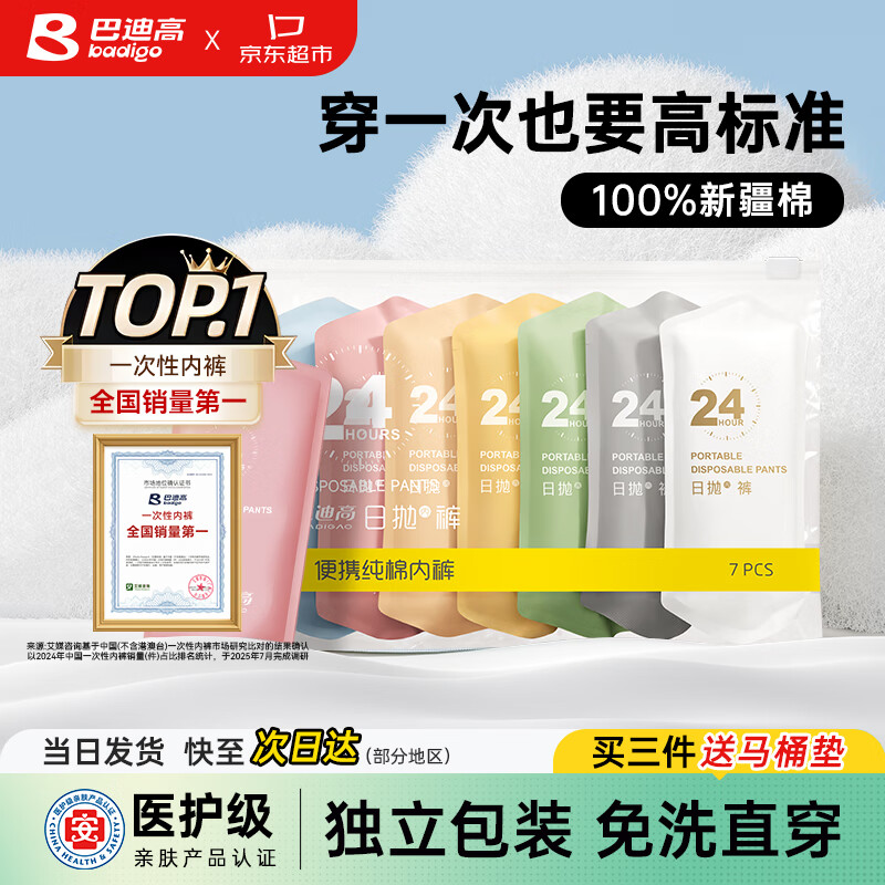 巴迪高(BADIGAO)一次性内裤女孕妇纯棉旅行女士产妇月子大码日抛7条L码安全灭菌
