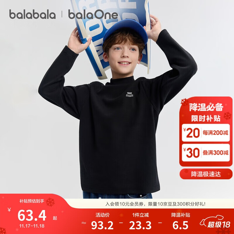 巴拉巴拉balaOne童装儿童长袖t恤男童女童2025冬季休闲打底衫208425100202