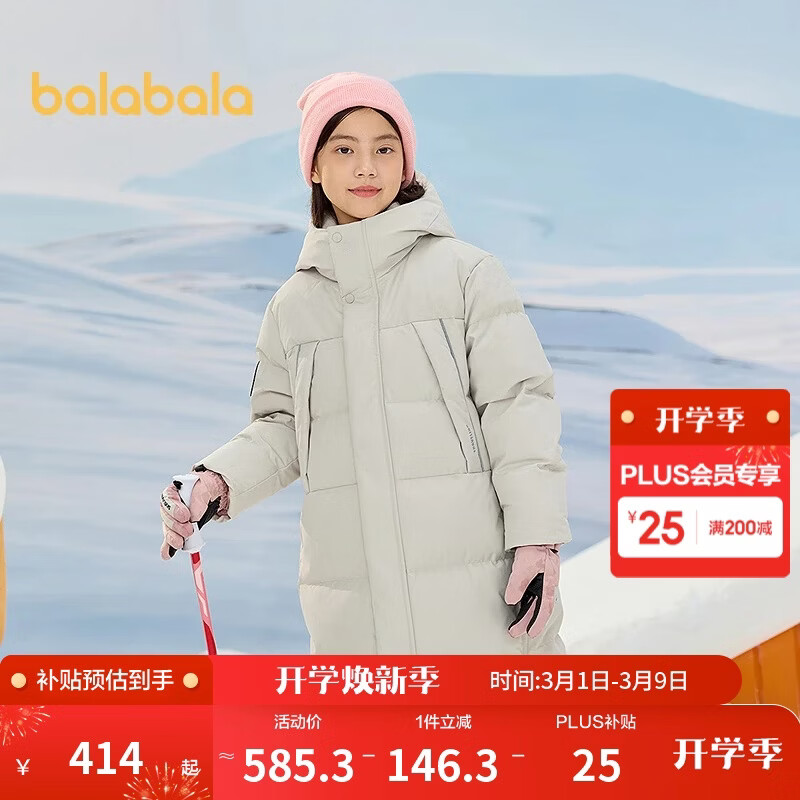 巴拉巴拉儿童羽绒服中长款冬加厚外套男女童2025连帽亲子装保暖防风防泼水