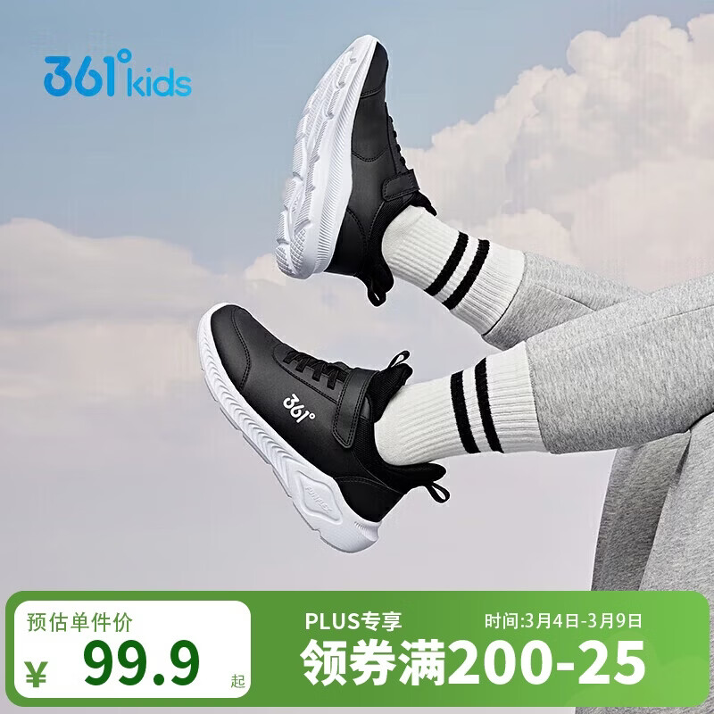 361°童鞋 儿童运动鞋25冬季男女童3-14岁皮革校园跑鞋 黑37
