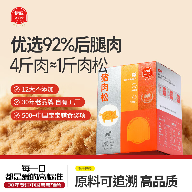 伊威(Eastwes)全机能猪肉松50g(10袋) 不添加食用盐蔗糖儿童调味品