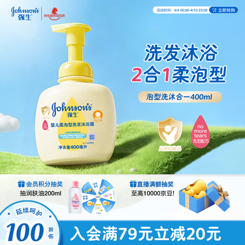 强生(Johnson)婴儿柔泡沐浴露洗发水二合一400ml 新生儿宝宝儿童泡沫洗护沐浴