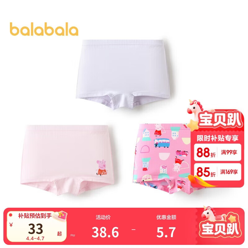 巴拉巴拉宝宝内裤棉a类儿童平角裤女童亲肤三条装208925170001