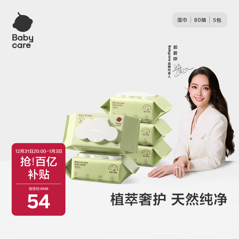 babycare婴儿手口湿巾新生儿湿纸巾宝宝带盖大包装 3150绿盖湿巾 80抽*5包