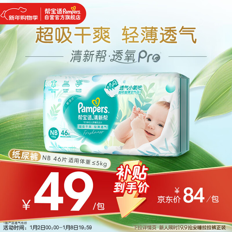 帮宝适超薄透气清新帮纸尿裤新生儿婴儿尿不湿尿片透氧Pro mini NB46