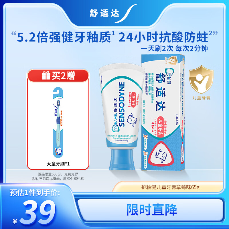 舒适达护釉健儿童牙膏6-12岁防蛀含氟65g草莓味护龈固齿 热门商品
