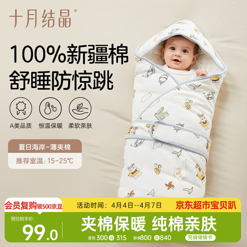 十月结晶婴儿抱被春秋棉襁褓宝宝产房包被四季通用薄夹棉 夏日海岸90*90