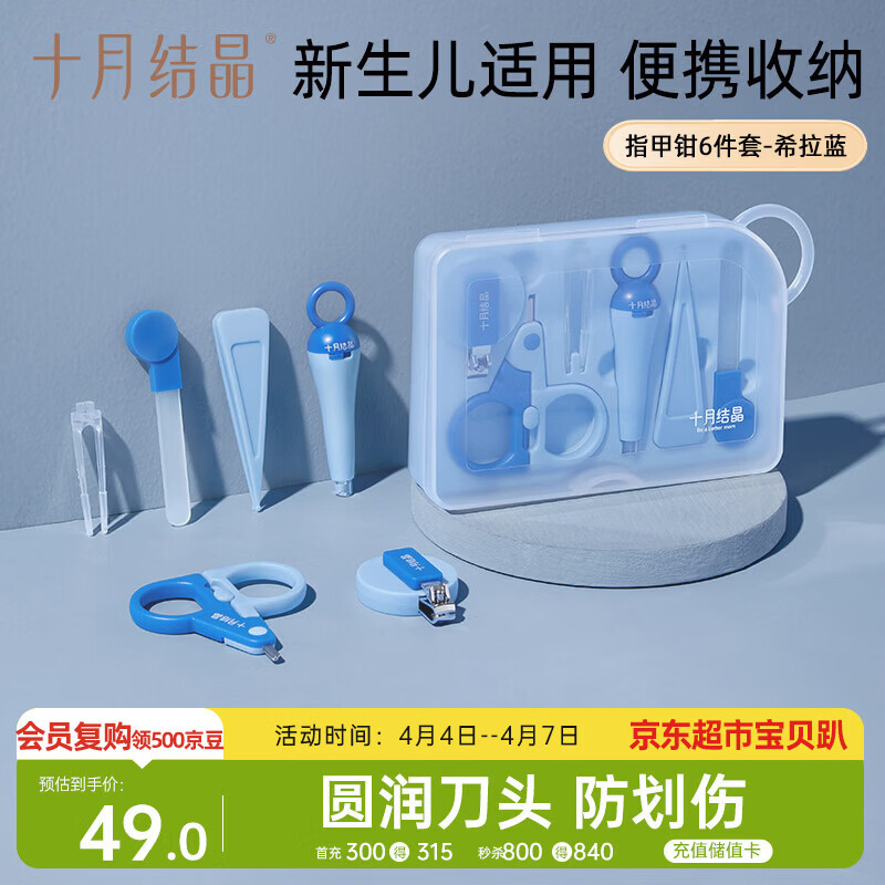 十月结晶婴儿指甲护理6件套宝宝婴幼儿指甲钳套装 蓝色