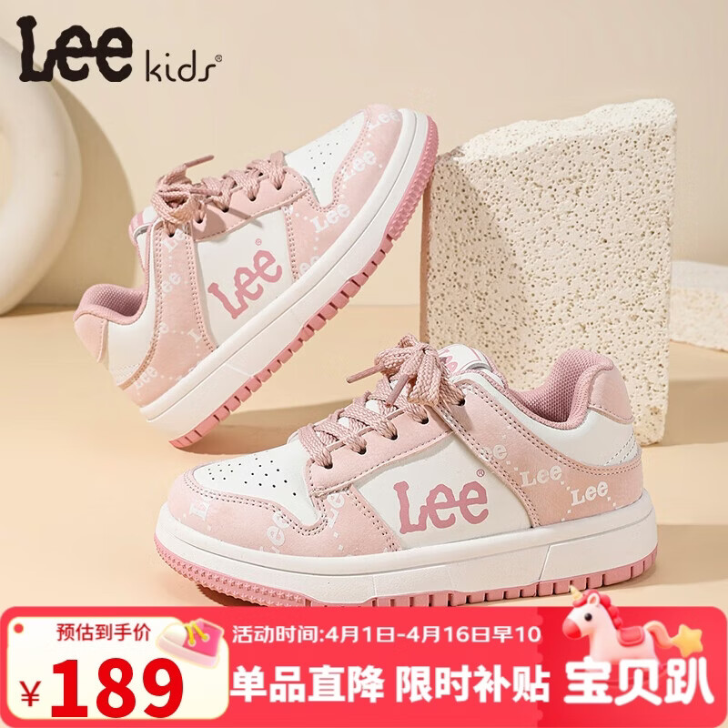 LEE KIDS童鞋春季新款百搭透气休闲板鞋男大童防滑运动鞋女童 米白粉35