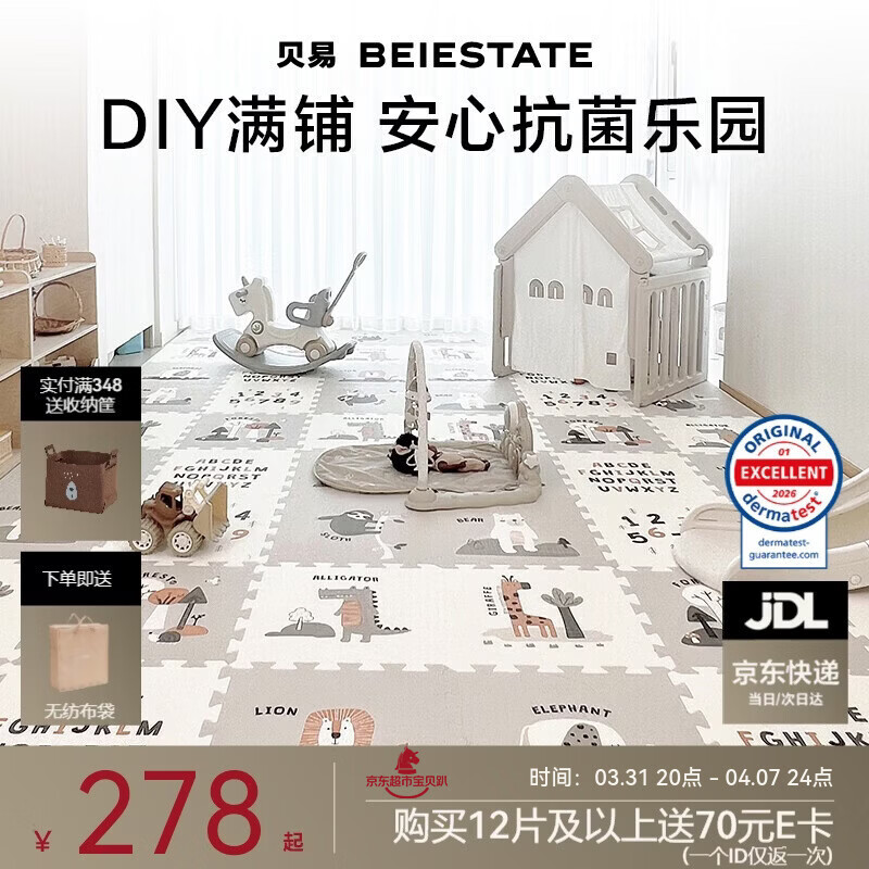 贝易婴幼儿爬爬垫拼接蜂氧棉xpe地垫爬行垫加厚宝宝防摔泡沫垫-清晨6