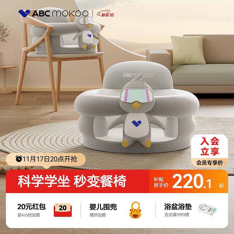 ABCMOKOO婴儿学坐椅不伤脊柱防侧翻座椅宝宝坐立神器沙发餐椅-魔可精灵