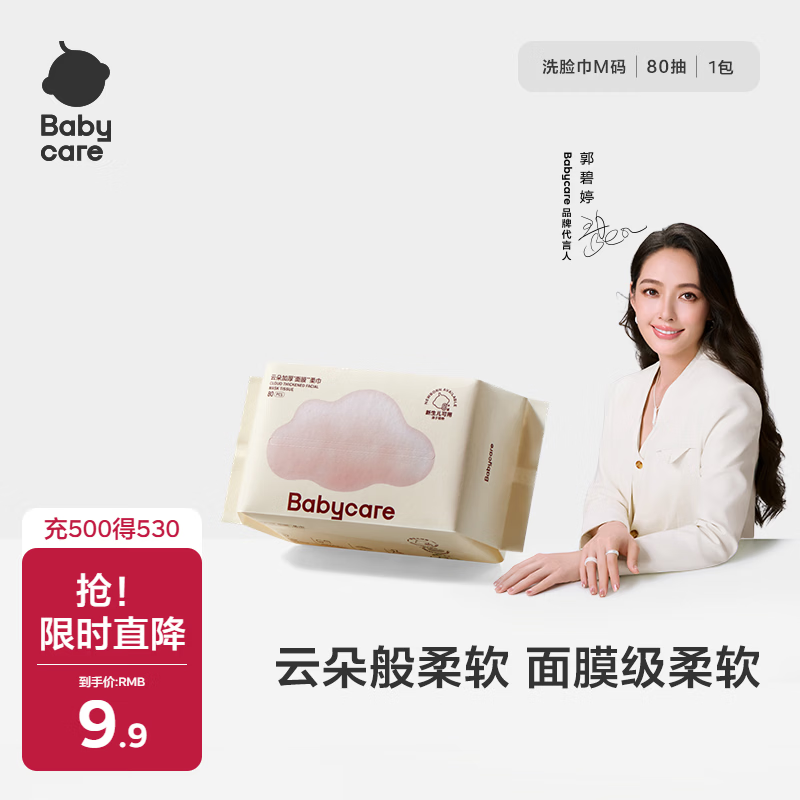 babycare面膜柔巾婴儿干湿两用一次性洗脸巾小熊巾加厚绵柔巾 80抽*1包