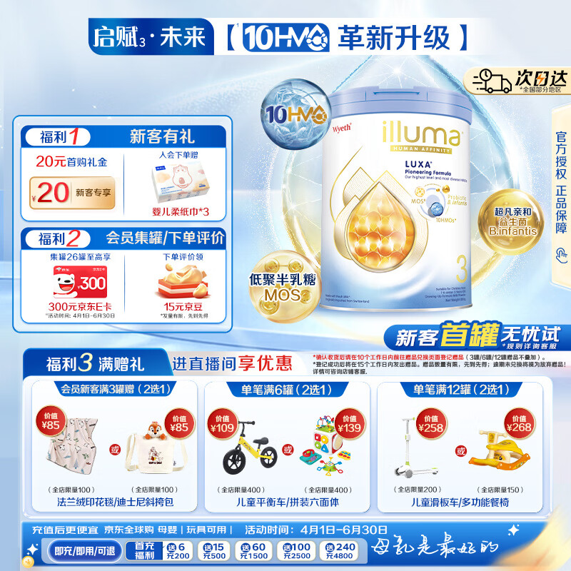 惠氏(Wyeth)启赋未来luxa 婴幼儿奶粉 3段1-3岁 800g 【10HMO+益生菌】