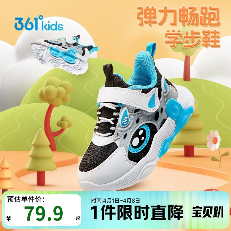 361°童鞋 儿童宝宝鞋四季男女童邦弹科技轻盈休闲鞋学步鞋 黑22