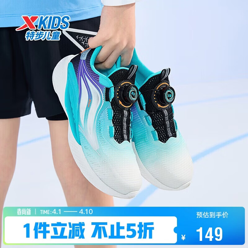 特步(XTEP)儿童童鞋氢风跑鞋旋钮扣飞弹科技运动鞋 帆白/普鲁士蓝 41码