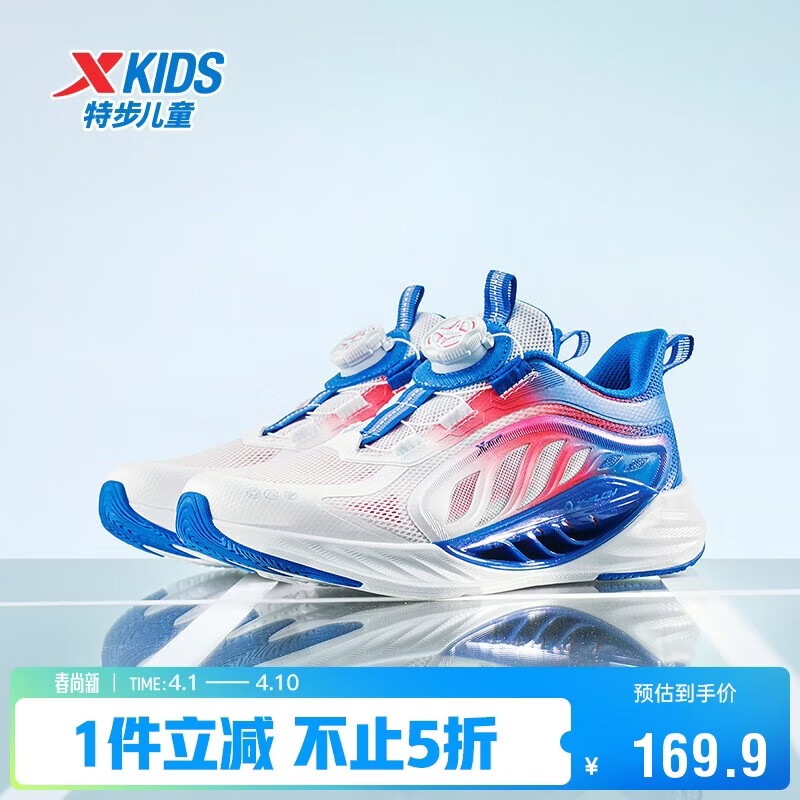 特步(XTEP)【氢风8.0护足跑鞋】儿童童鞋透气旋转扣跑鞋 特步白/里昂蓝 37
